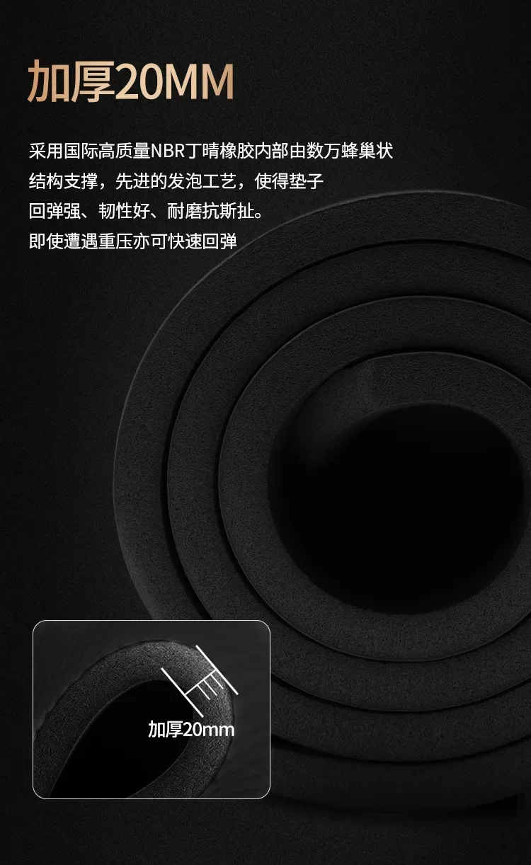 200*90cm Thick 20mm Men's Gym Mat Beginner Yoga Mat Thickened Widened and Lengthened Non-slip Sports Yoga Mat for Home